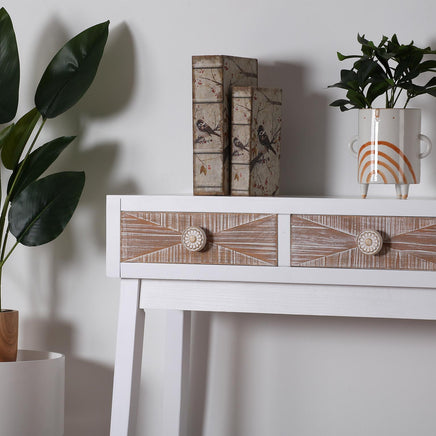 Mooie console tafel met laden in hout uitgevoerd. Voor het moderne hedendaagse interieur.