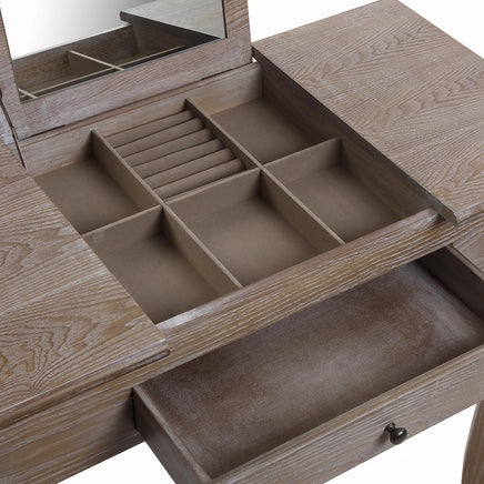 Mooie make-up tafel met laden in hout uitgevoerd. Voor het moderne hedendaagse interieur.