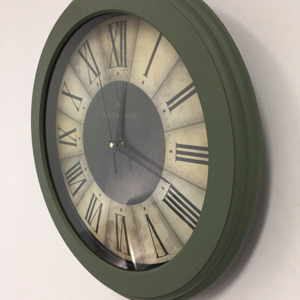Imponerende wandklok in een opvallende roulette uitvoering. De klok heeft een diameter van 30cm en heeft een fors postuur, waardoor het de blikvanger van uw interieur is. Dit uurwerk is gemaakt van hoogwaardig kunststof met groen/grijze afwerking en een glas voor de wijzerplaat. Werkelijk een zeer bijzonder model.