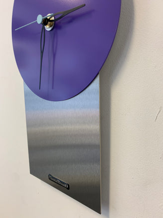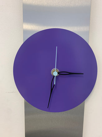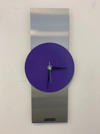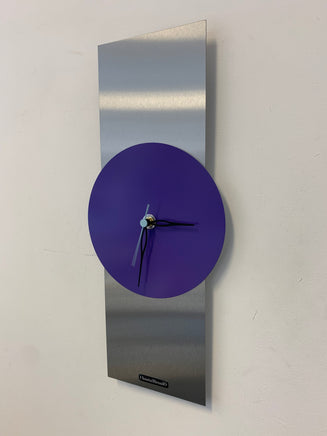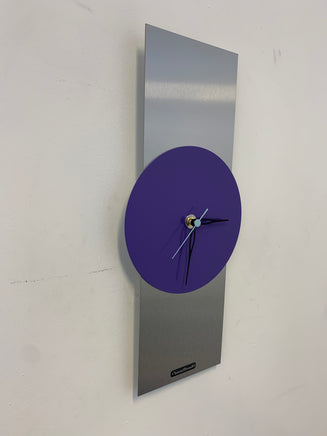 Recht RVS model met grote paarse cirkel. Lengte 46x20 cm. Opengewerkte design cijfers in de kleur zwart. Lichtblauwe contrasterende seconden wijzer. Een sublieme investering voor uw woninginrichting.