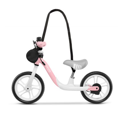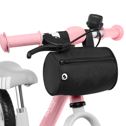 Aan de fiets is een speciale stuurtas toegevoegd , waarin de baby zijn speelgoed en schatten kan opbergen die hij tijdens het buitenspelen heeft gevonden. De stoffen tas wordt afgesloten met een ritssluiting, waardoor het kind er zeker van kan zijn dat er niets verloren gaat. Er is ook een speciale riem voor het dragen van de fiets toegevoegd, wat een comfortabel transport garandeert.